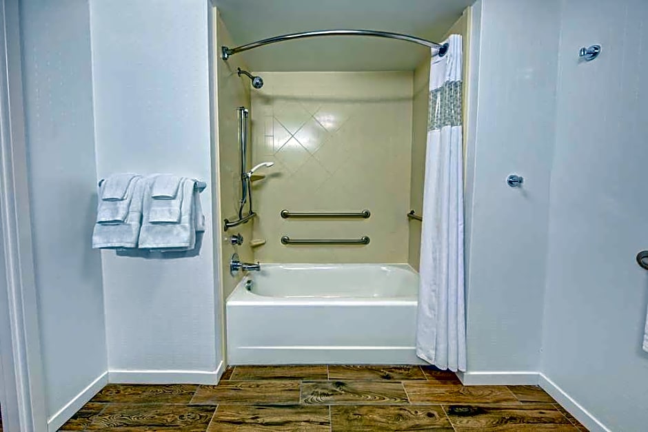 Mobility & Hearing accessible, free WiFi, tea/coffeemaker, easy chair with ottoman Have a relaxing stay in this king room that features our clean and fresh Hampton bed®. Unwind in the easy chair with ottoman while watching your favorite show on the HDTV. Enjoy a delicious hot drink from your in-room tea/coffeemaker. This room includes a spacious work desk and free WiFi to let you catch up on work while traveling. In the bathroom you'll enjoy fluffy towels, a WaterPik® showerhead and curved shower rod for added space and light. Any corresponding photo may not reflect the specific accessible room type or room feature.